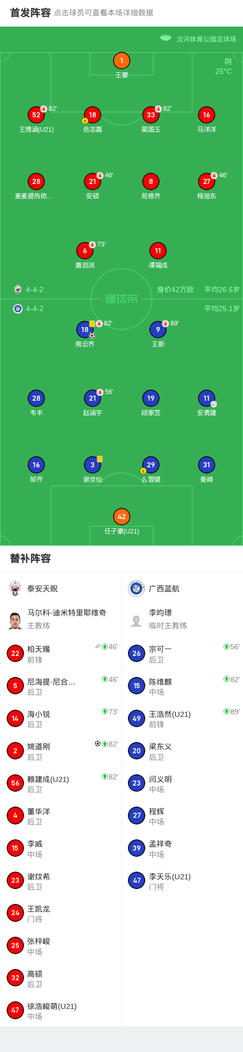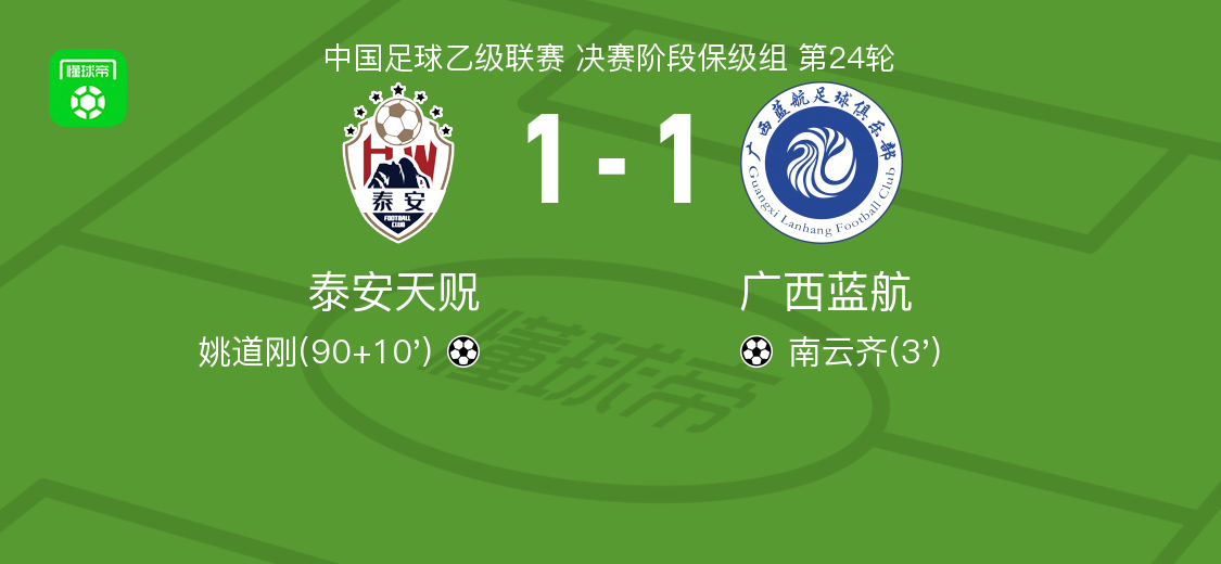 泰安天贶1-1广西蓝航,南云齐破僵,姚道刚扳平比分