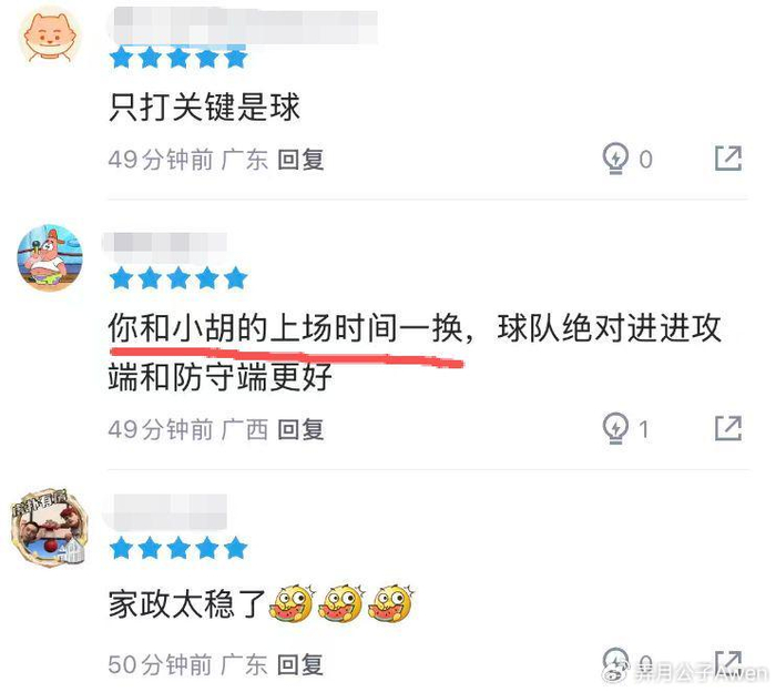 本轮广东以5分优势击败深圳的比赛中,陈家政在8分钟的上场时间里,三分球2中2,拿到6分。而这两个三分球,都是那种大心脏的关键三分。作为对比,本场比赛胡明轩打了25分钟,只得到3分(5中1)。有球迷表示:“把胡明轩的时间给陈家政吃了吧。”